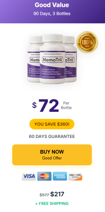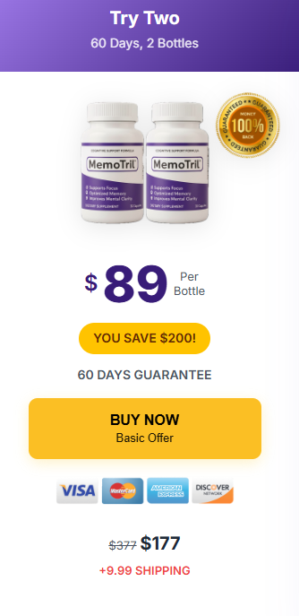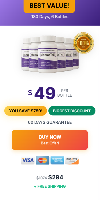 MemoTril is currently backed by a 60-day money-back guarantee. Free shipping may be available on select multi-bottle packages, along with additional savings depending on the option chosen.